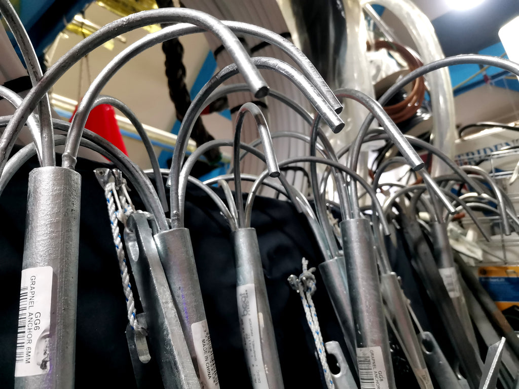 A lightweight four pronged grapnel constructed of steel and then galvanised.