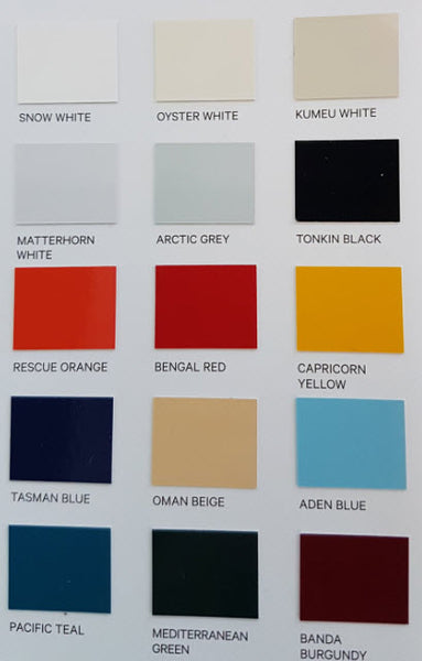 15 Colours available note the colour grid gives an indication.
