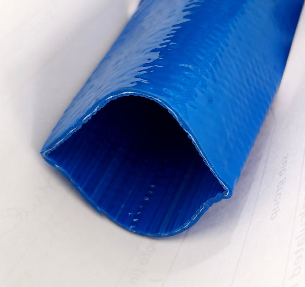 Plasticized reinforced lay flat hose available in 3 sizes - because of it's thinner walls it is often used over mooring lines to minimize chafe, or of course hosing.