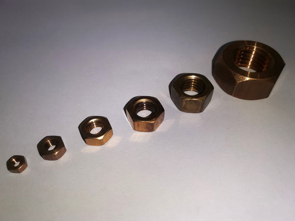 Metric thread silicon bronze nuts from M4 to M20 - larger sizes on request.