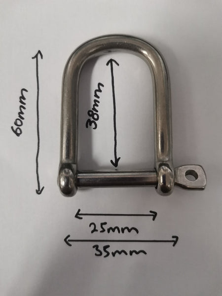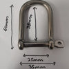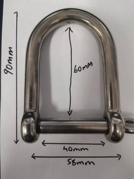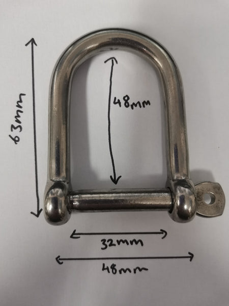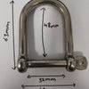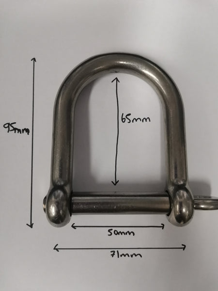 Rounded wide dee shackle 316 stainless steel with screw pin & rounded section.