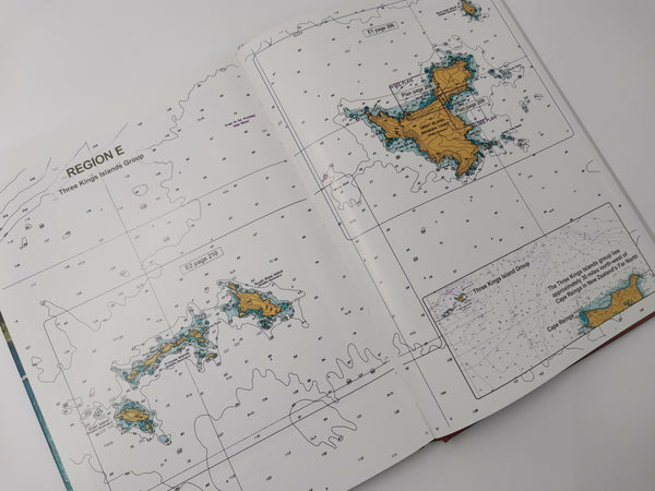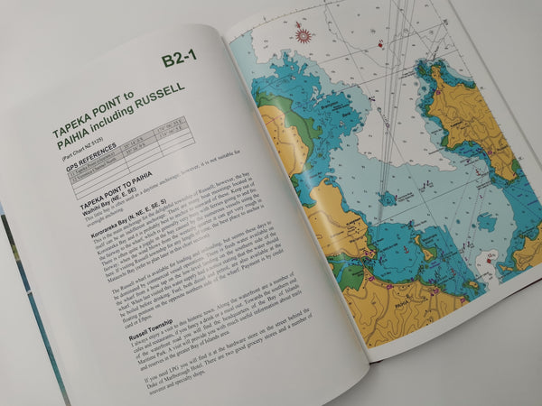 The Bay of Islands section starts at Whangamumu and on its own is an extensive and invaluable guide to the region. Coverage includes the Waikare inlet and the extensive water area in the approaches to Kerikeri. Thence coverage extends to the Cavalli Islands, Whangaroa and The Far North.