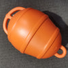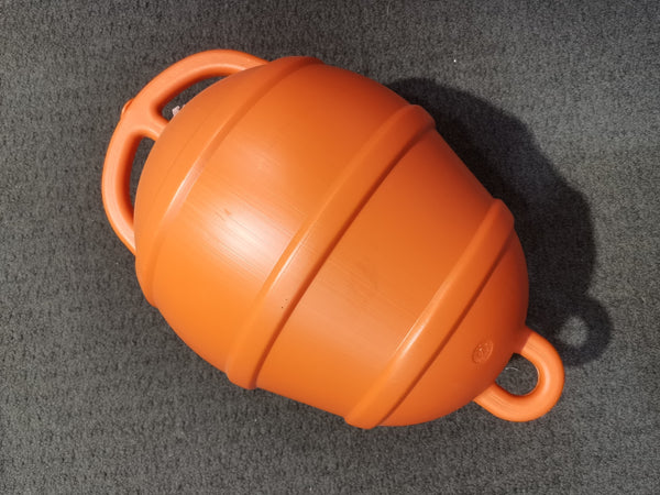 These Orange Marker Buoys have a total length of 39 cm and a diameter of 25 cm. Twin handle at the top and eye at the bottom allow connection.