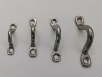 These saddles are designed as a guide or linking point and constructed of solid stainless steel rod, pressed at either end to accommodate fastening.
