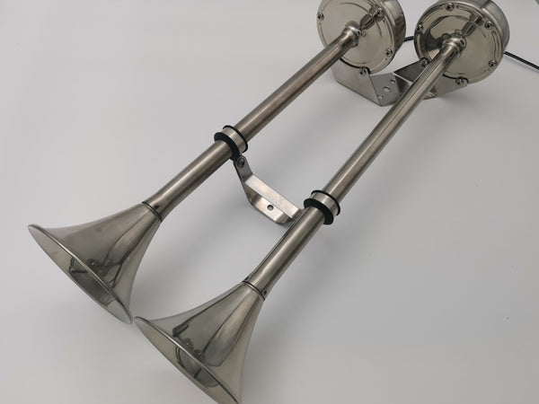 Five Oceans´ electric horns are 100% non-magnetic grade stainless steel, manufactured with great quality and beautiful bright polished finish that will not rust.