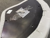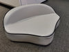 Grey marine vinyl with thick contoured foam padding for comfort, and black piping