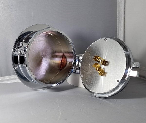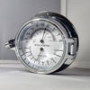 75mm diameter face, and a 116mm diameter base, mounted in a porthole styled solid chromed brass case with bevelled glass front.