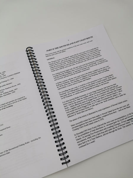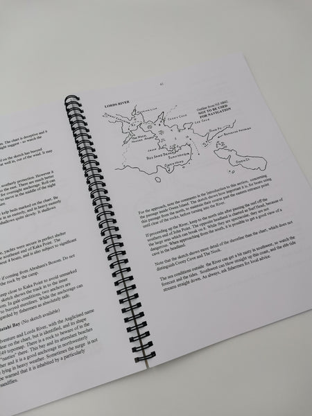 Pictorial drawings and photographs of the entire Stewart Island Coastal area. Local knowledge and anchorages included. Covers areas not well documented by existing charts. 90 pages.