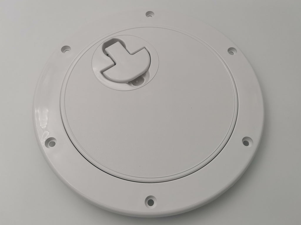Made from UV stabilised ASA plastic with neoprene lid seal giving splash proof finish in vertical installations. Simply turn twist lock recessed handle to open and remove hatch lid to allow full access through port.