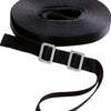 With a maximum length of 12m and Stainless Steel buckles and shackles the Jackstay is tested to take a load of more than 2000kg. The Jackstay has a sewn loop at one end and an adjuster at the other end. Both ends should be attached to strong points that together will take in excess of 2 tonnes. Adjustment of the jackstay length is made by moving the webbing through the stainless steel ladder. It is important to keep the jackstay stored away from direct sunlight in a well ventilated space when not in use to prevent Ultra Violet degradation. It is also important to check that the strong points must not have any corners or sharp edges that may abrade or cut the webbing.