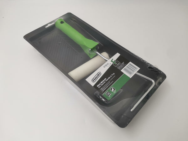 Comes complete with a sponge foam roller that can be replaced as needed, a paint tray, and the roller handle has subtle indents and thumb placement for a firm grip, useful for varnishing, applying polyurethane, and oil based paints.