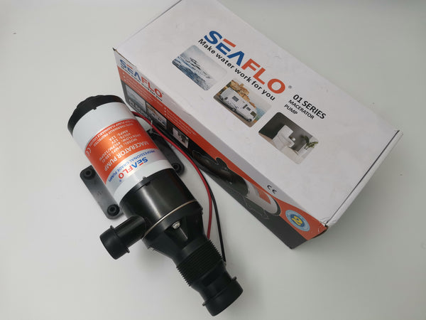 12V in line self priming (up to 1m) accepts 38mm internal diameter hose coming from your holding tank and pumps out in 25mm internal diameter hose.