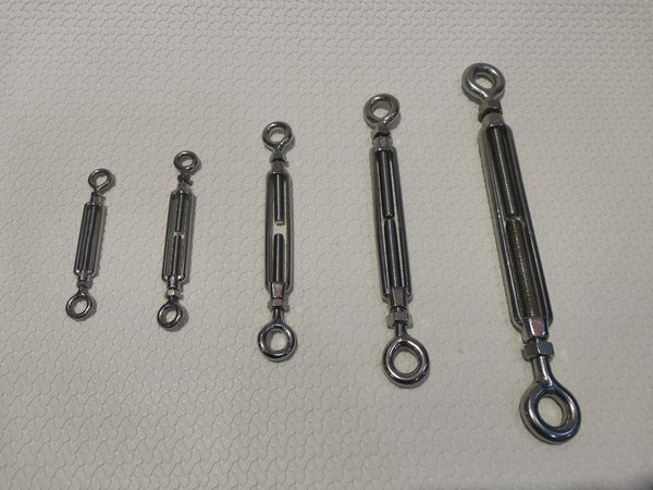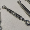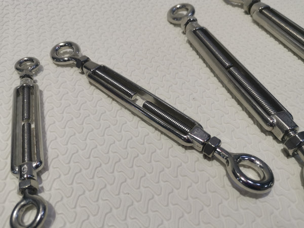 For those uses of a semi-industrial nature we find these open barrel turn buckles ideal to cope with most tensioning uses. Easy to see what is going on and to grip by hand to twist up.