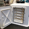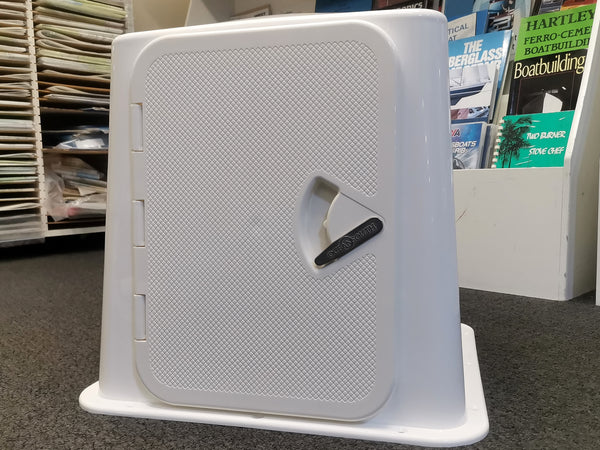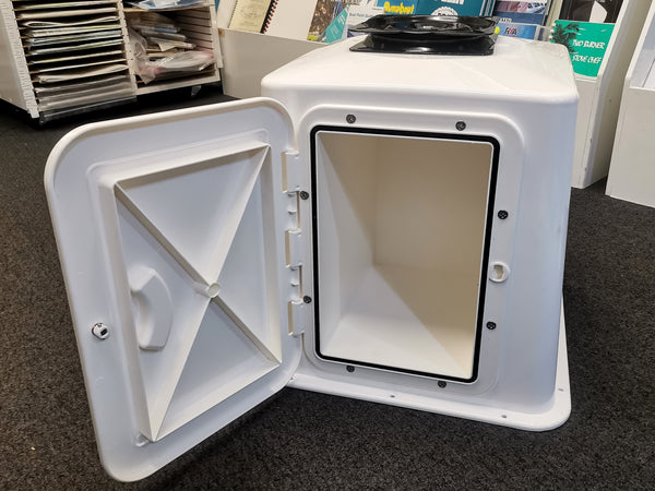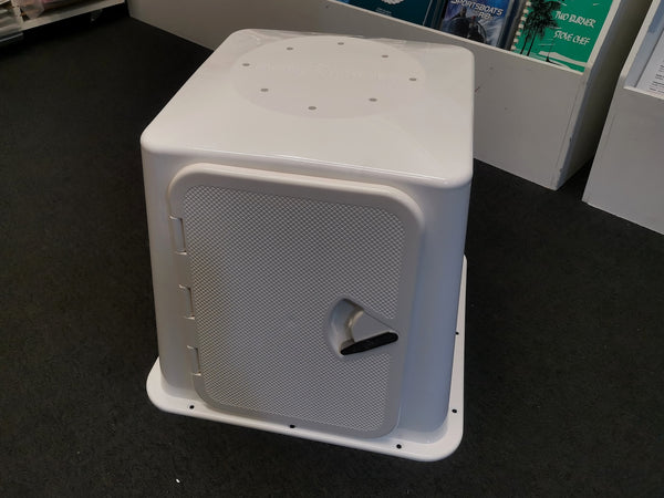 Complete moulded single seat platform base in a semi square style with an integral storage locker incorporated.