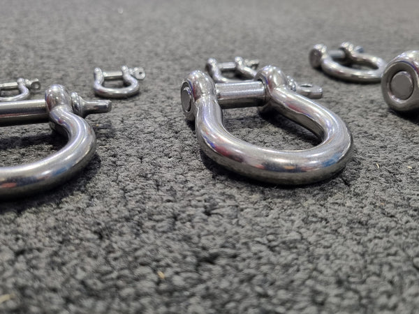 A range of solid 316 stainless steel screw pin shackle with the pattern of the conventional bow style.