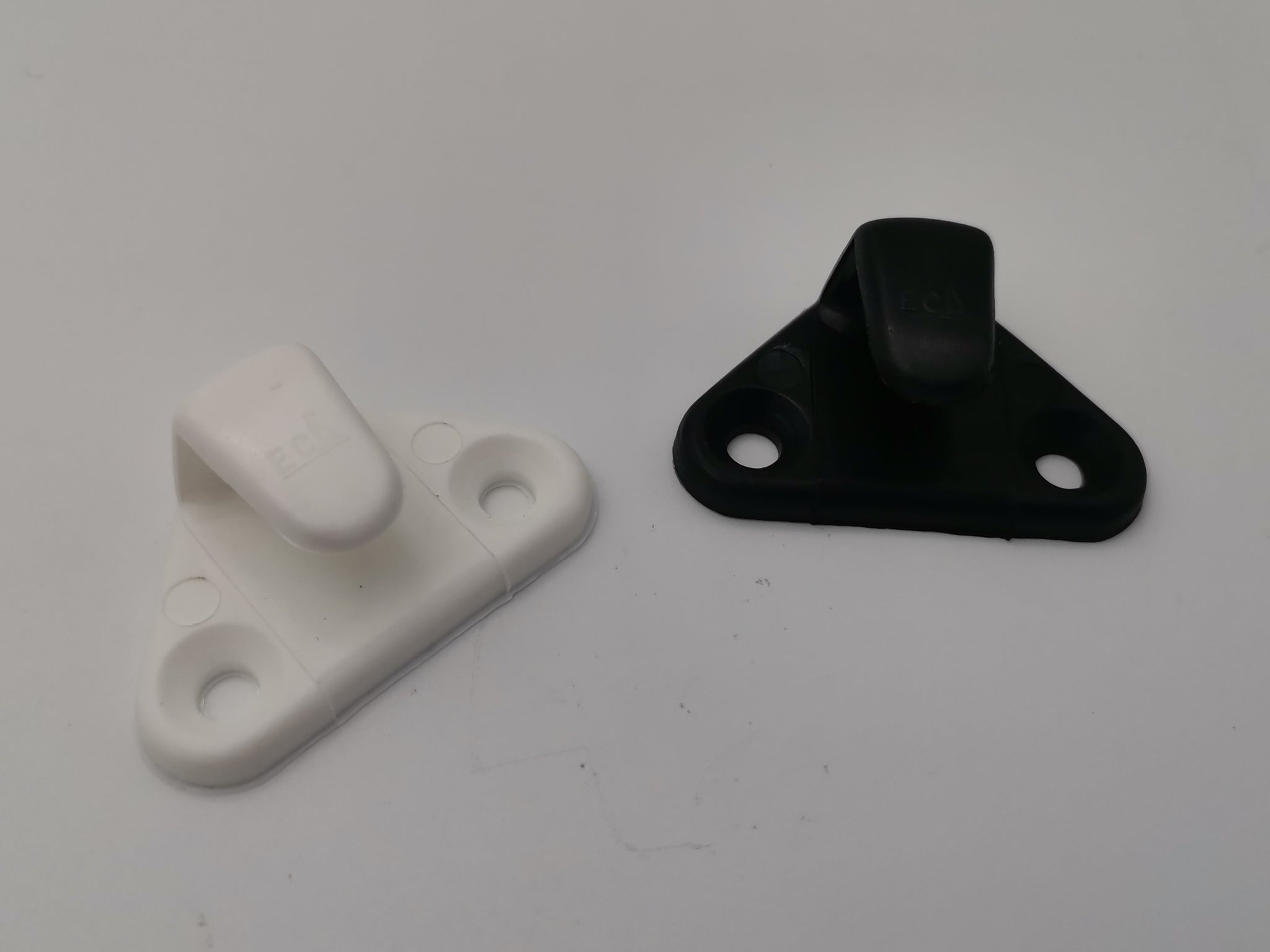 A triangular based low profile hook, that suits canopies, shock cord/stretchy cord. Ideal for around pools, often used with utes, again for covers. Two hole fixing.