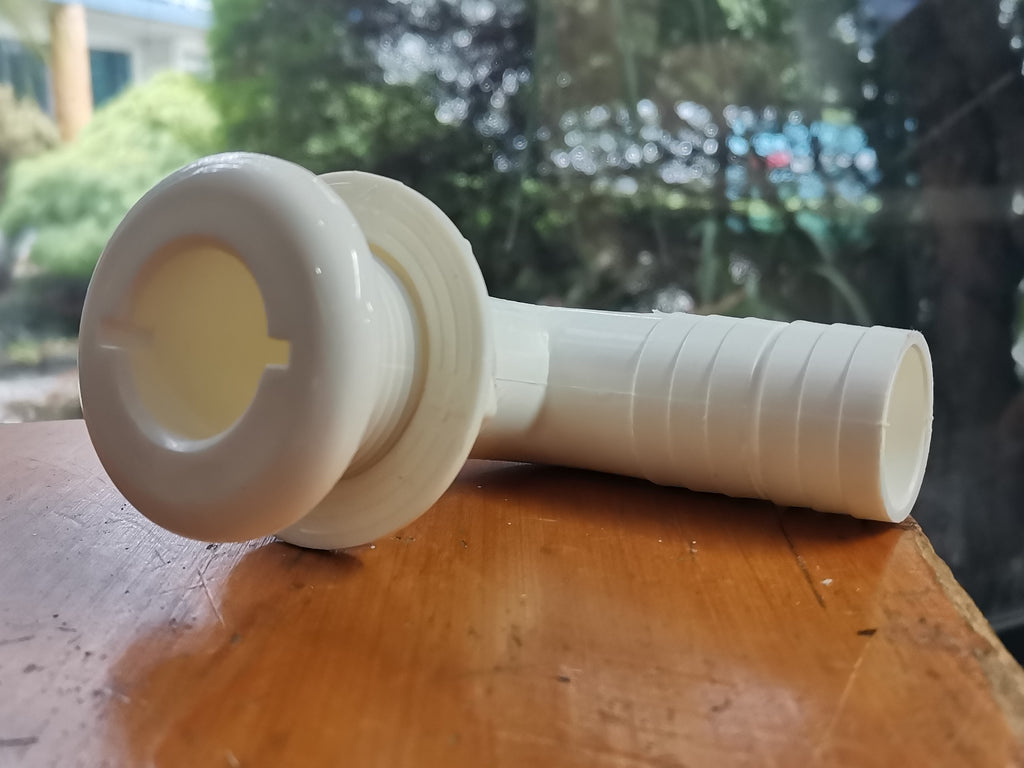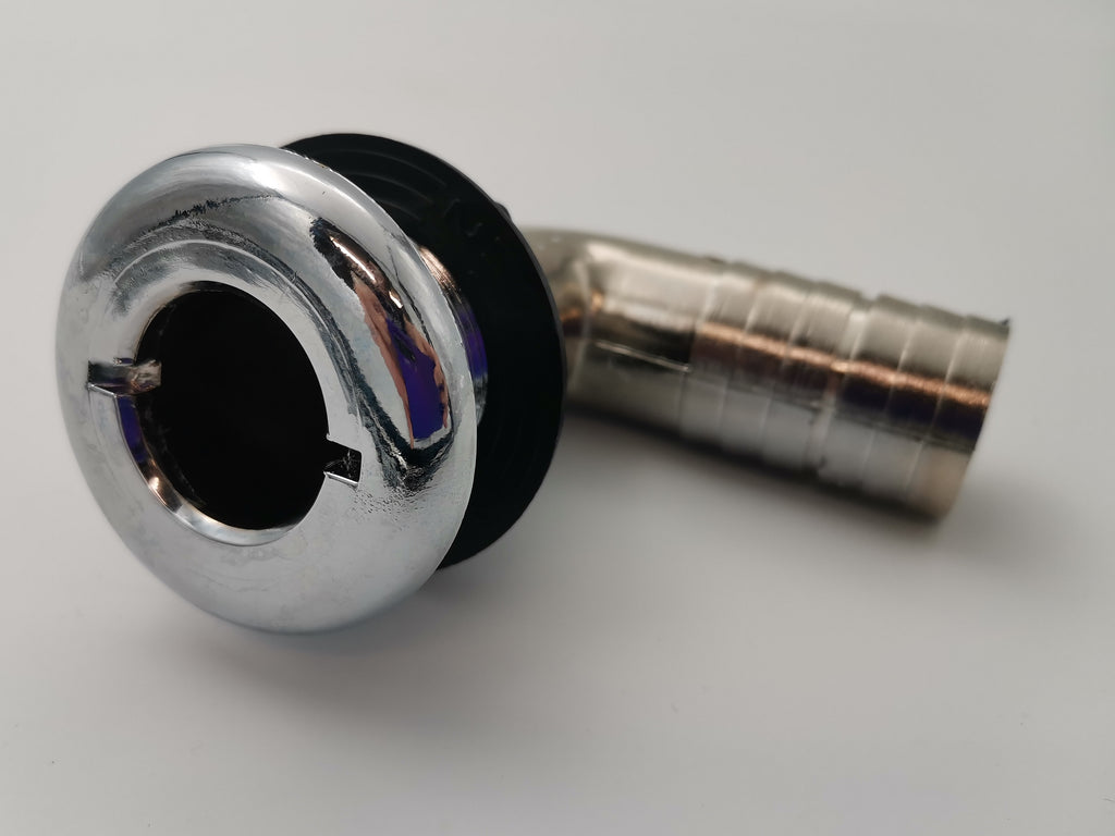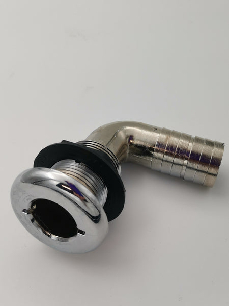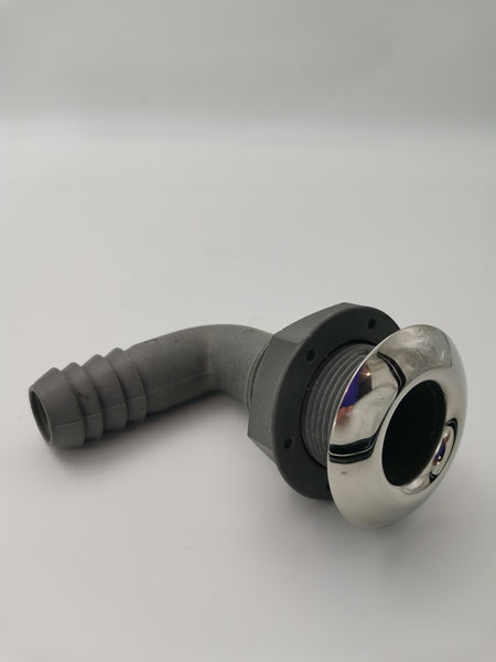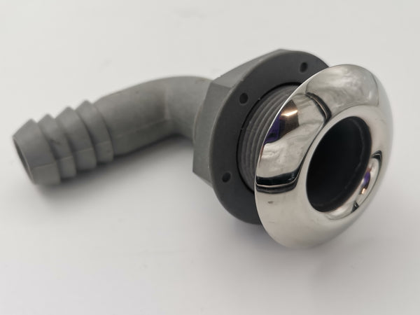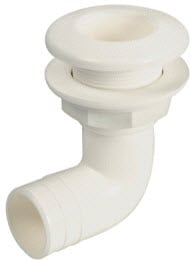 Designed as bilge pump outlet elbow allow tubing to be lead in neatly against the hull.