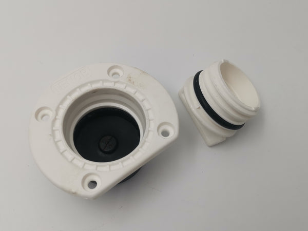 Comes complete with screw in plug. This mounts from the inside or outside of the boat simply by pushing out the centre pin, (which has the rubber flap incorporated) and transferring to the opposite side of the bung. If leaving the boat for an extended period the bung cap is provided.