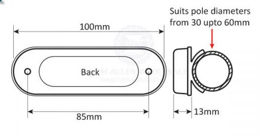 A great innovation for those needing a rail mount light that neatly conforms to tubing from 25mm to 50mm diameter. They even incorporate a small waterproof push button on-off switch (rated IP65 waterproof rating). Many use these on bimini rails - handrails, even roll bars.