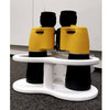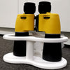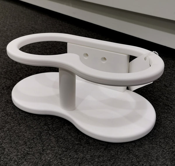 No maintenance white acrylic holder designed to accept most common binoculars to oversized unite.