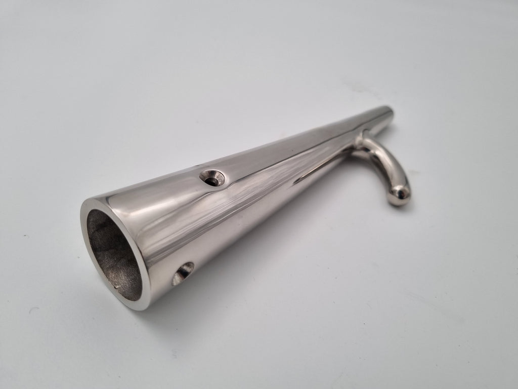 Heavy Duty stainless steel construction with 2 pre-drilled fastening holes. Fits externally - over your pole.