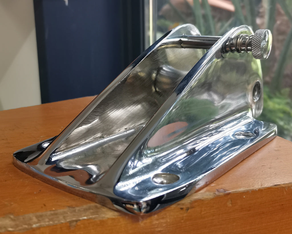 Chrome plated brass with no lose pin at the top to prevent your rope or chain from inadvertently coming out and causing chafe or damage to your deck.