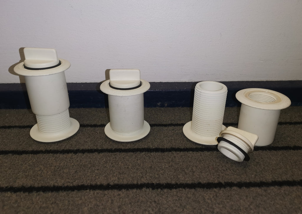 Double ended bung that can be glue sealed in + firmly secured with integral rear end skin fitting, thus, the unit can be used as an open drain, yet, simply sealed off with the use of the bung that comes with it.
