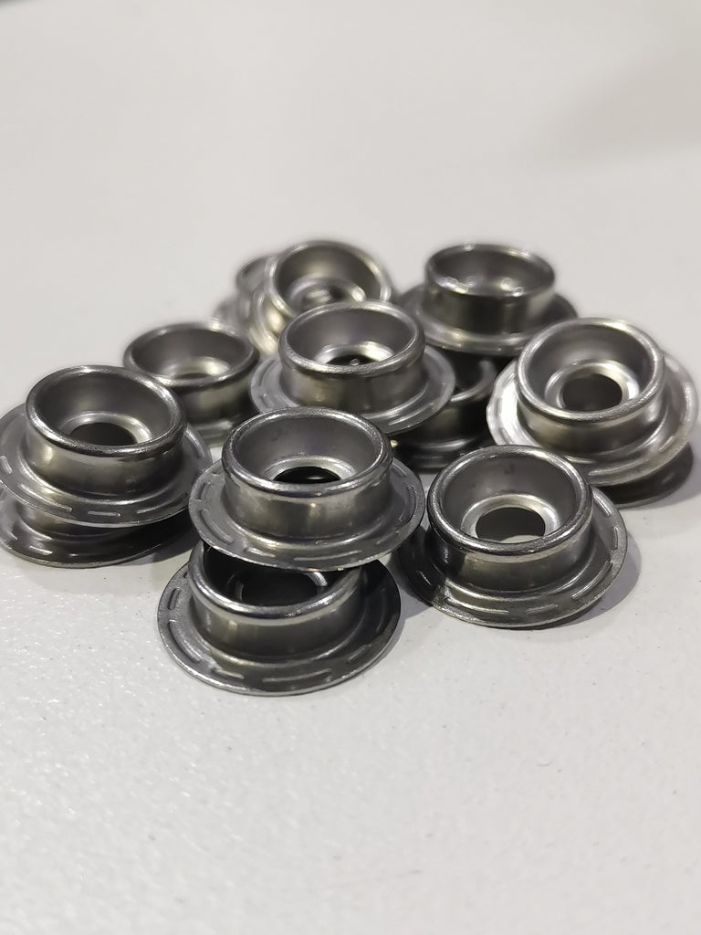 Popper for securing tarpaulins, canvas, and other covers. Made from stainless steel.