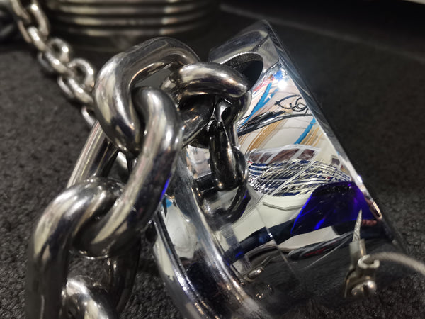 The slot will suit 8mm chain but can be filed out slightly (by 3mm) to suit 10mm chain.
