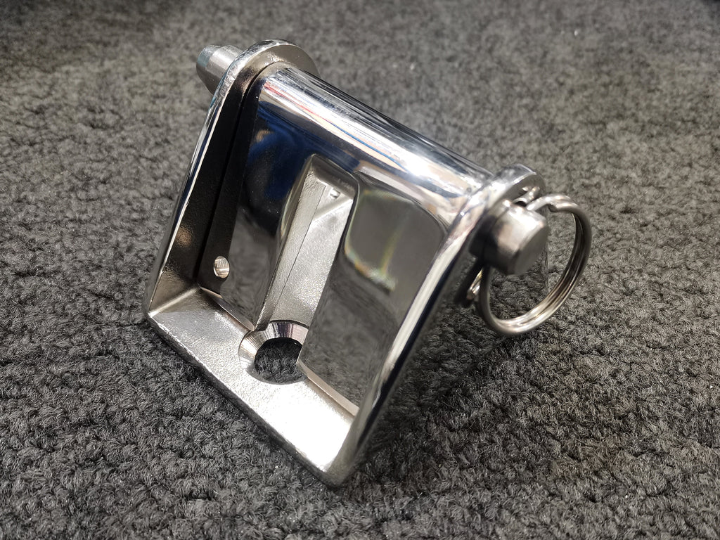 An all stainless steel simple chain lock that allows you to put in place an additional stop to lock the anchor chain + anchor in place when it is on the deck, should the anchor winch not be securing it, or someone has forgotten to put the locking pawl on the winch in place.