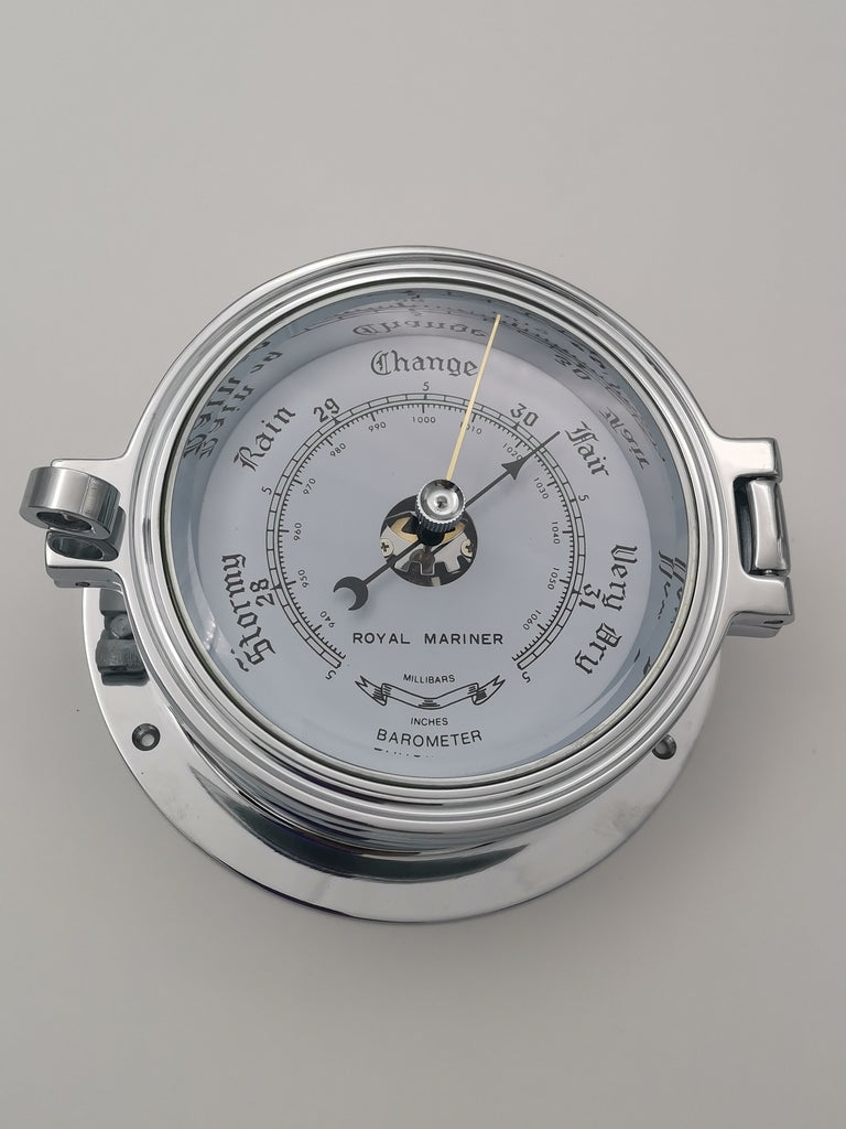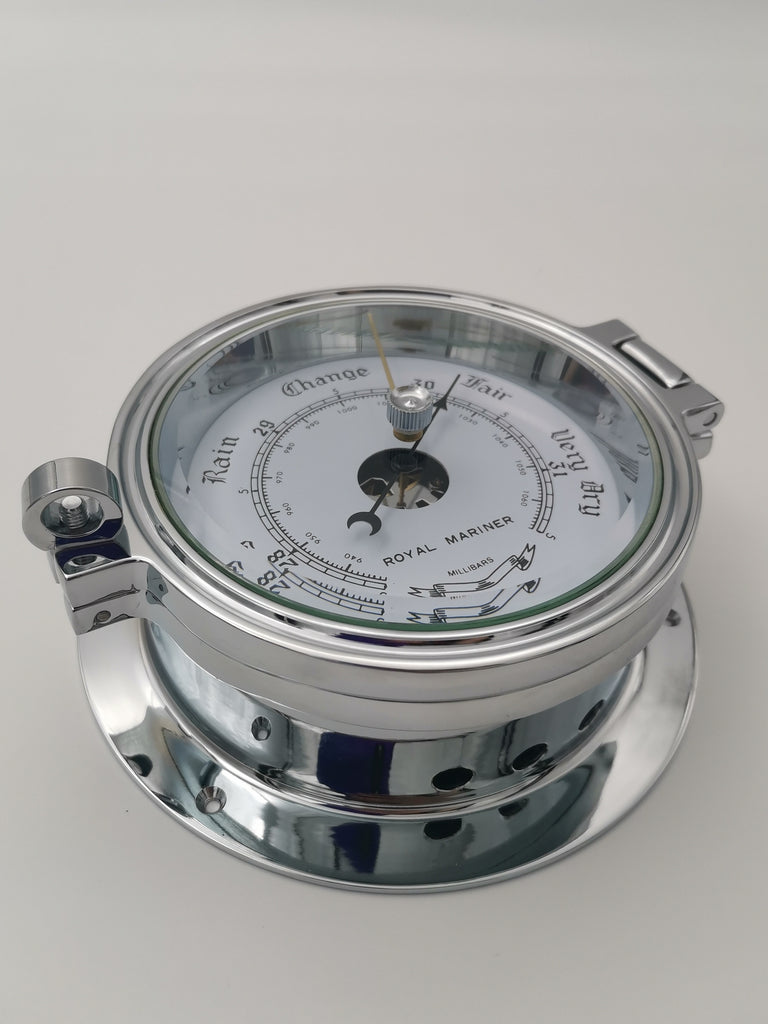 Barometer Chrome Plated Brass 75mm face 116 base dia.