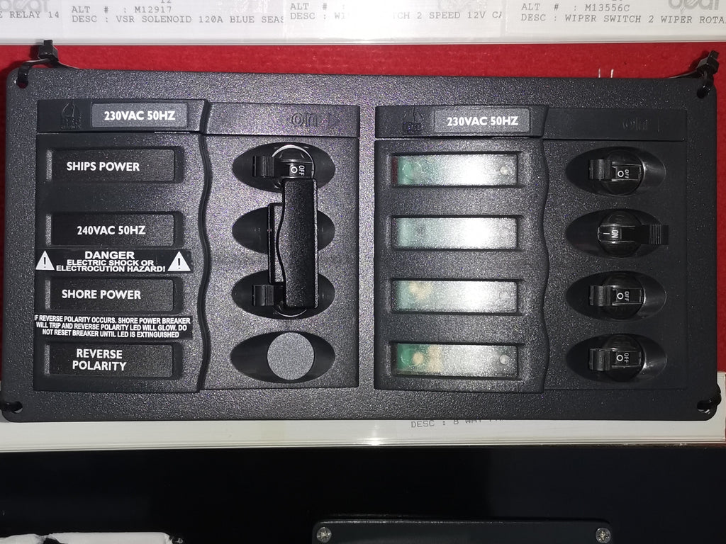Ideal for AC shore power installations and on board inverter installations. In NZ, must be installed by certified 230v electrician