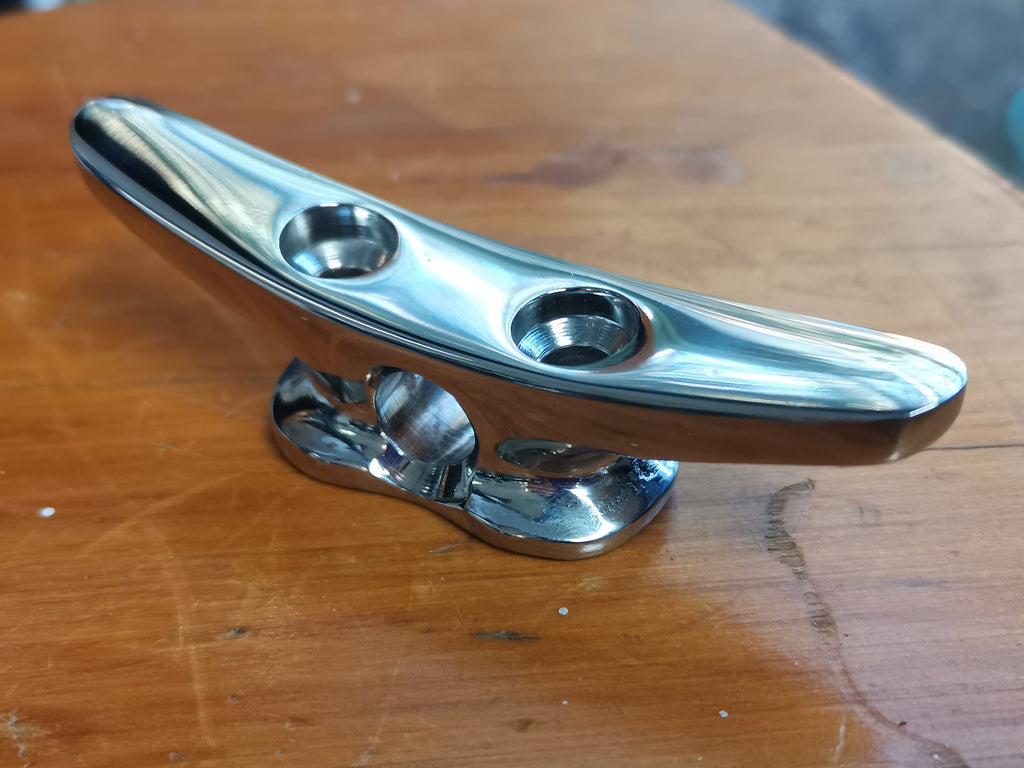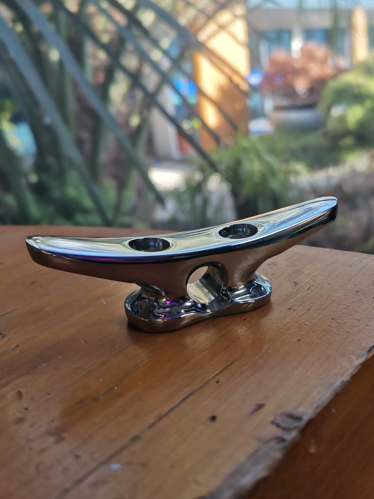 A mini c/p bronze cleat that will also double as a fairlead in the base.