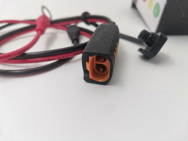 With the comfort connector right in the end of the indicator you can easily connect your charger directly into the indicator to recharge the battery once you have removed the alligator clips.