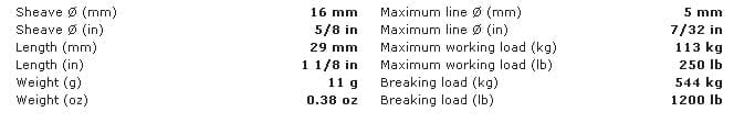 The 16mm is Harken’s smallest pulleys.