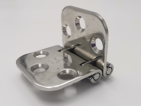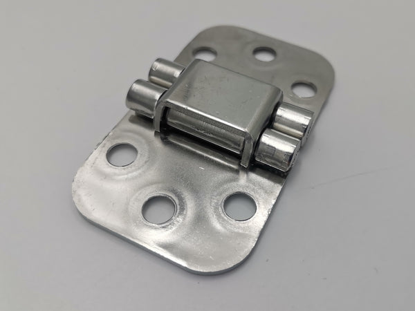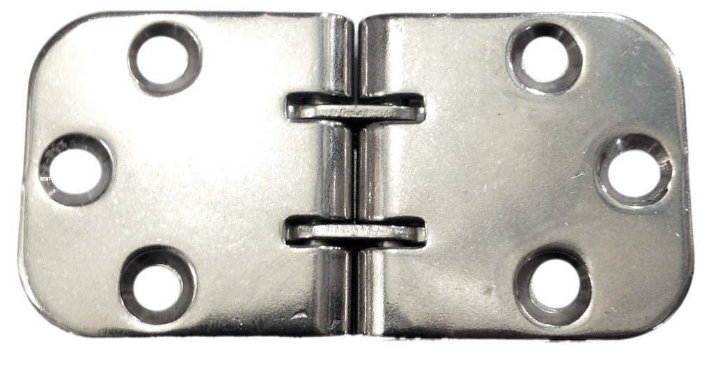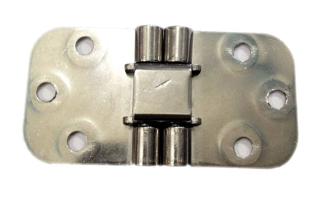 Italian Counter Hinge - Pressed Stainless steel - Dimensions: 80 x 40 x 2mm - these units allow a full flush mounting of the hinge, yet still able to hinge back a true 180 degrees. Used mainly where the bench, table or hatch has to hinge right back onto itself.