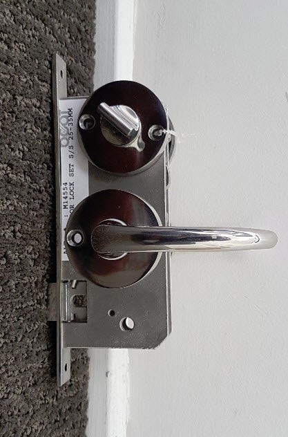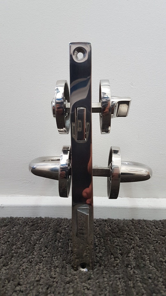 Particularly well suited to thinner 25-35mm door. Being all stainless and low profile handles, it will mount on an internal toilet door because of its snib locking action. A snib handle on the inside and emergency screw slot on the outside, allows access should someone become incapacitated and access be required.
