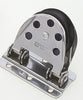Pivoting block on base for ropes up to 12mm diameter. the aluminium alloy sheave has an extra groove in the sheave to allow acceptance of 5mm diameter wire or 12mm diameter rope.