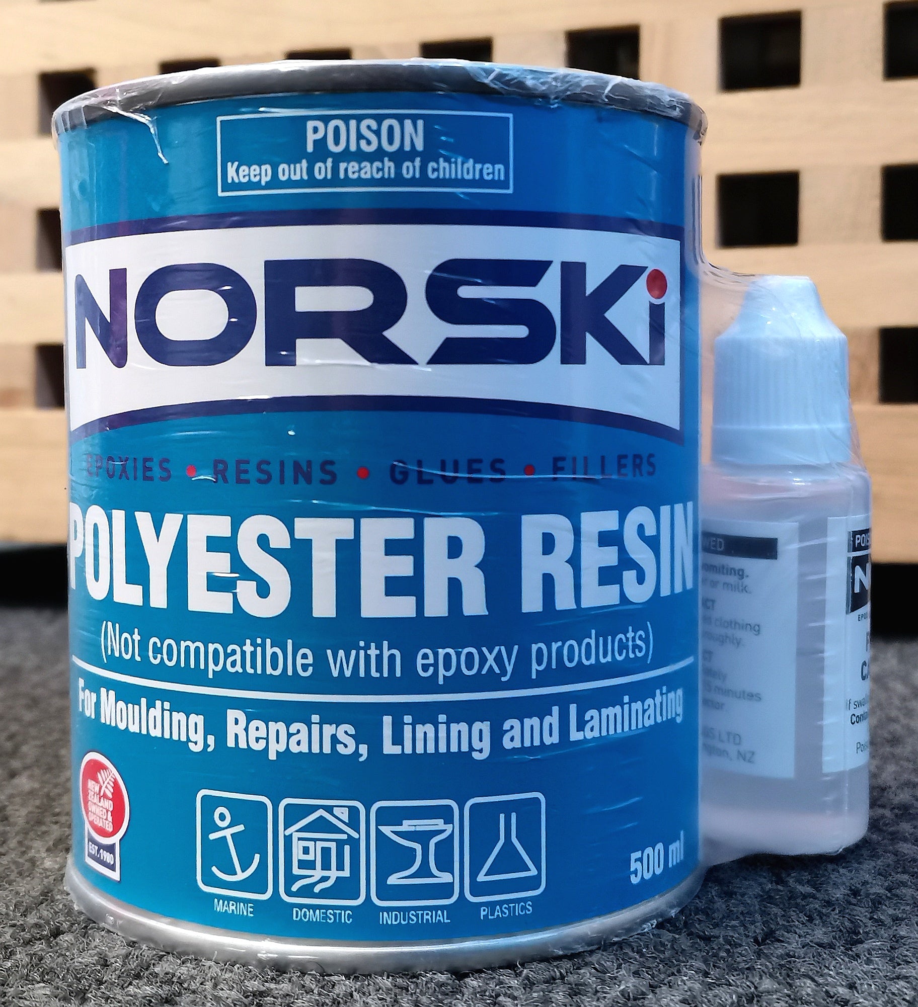 Supplied complete with Norski Polyester MEKP hardener for curing.