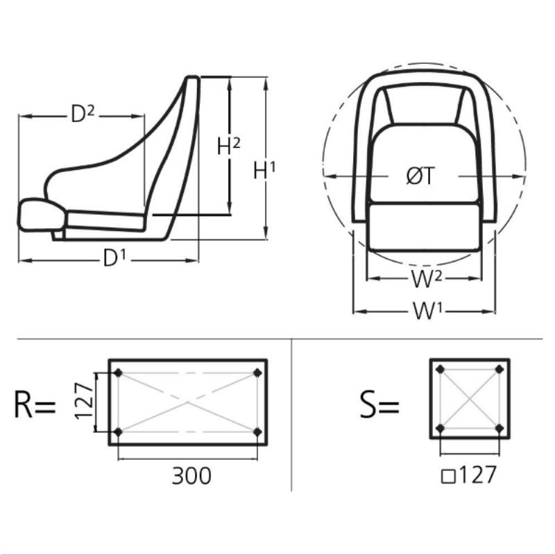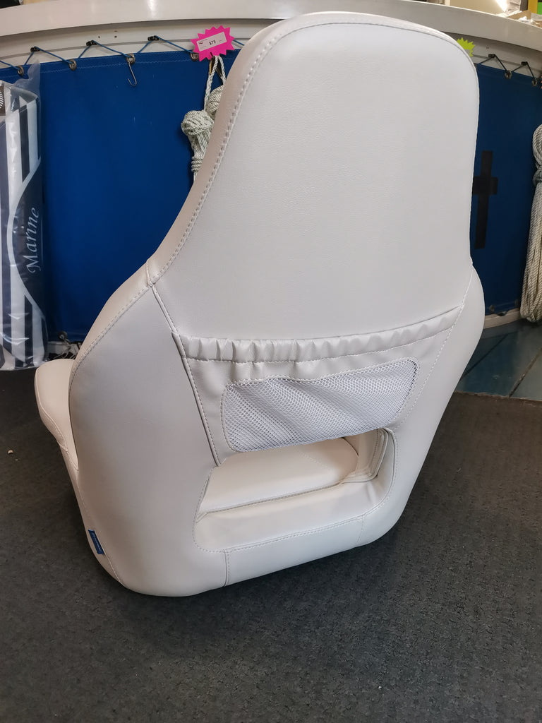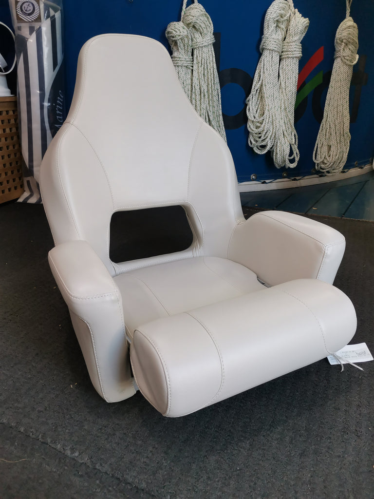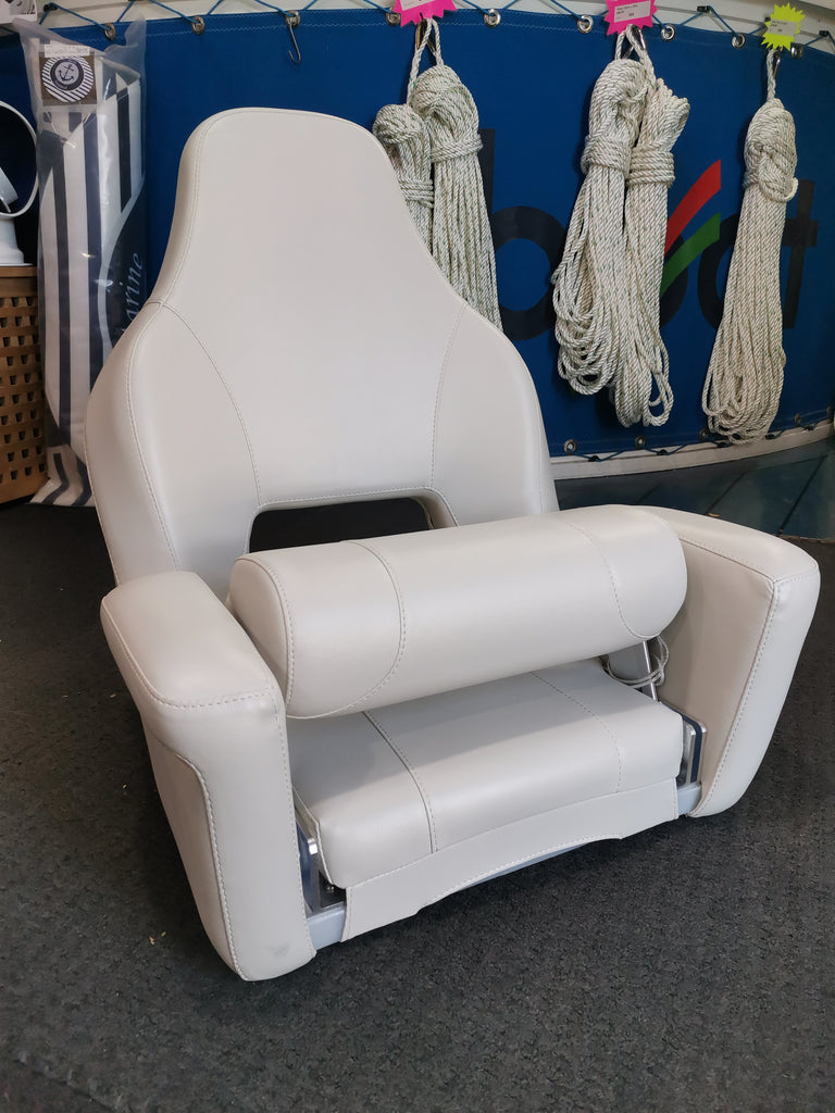 Ideal helmsmans chair with intergral arm rests + flip up bolster for steering, leaning/ standing against.