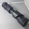 The self centring trailer roller with shaft has a 5/8" diameter steel shaft moulded permanently into the roller. It is made out of a solid black rubber.