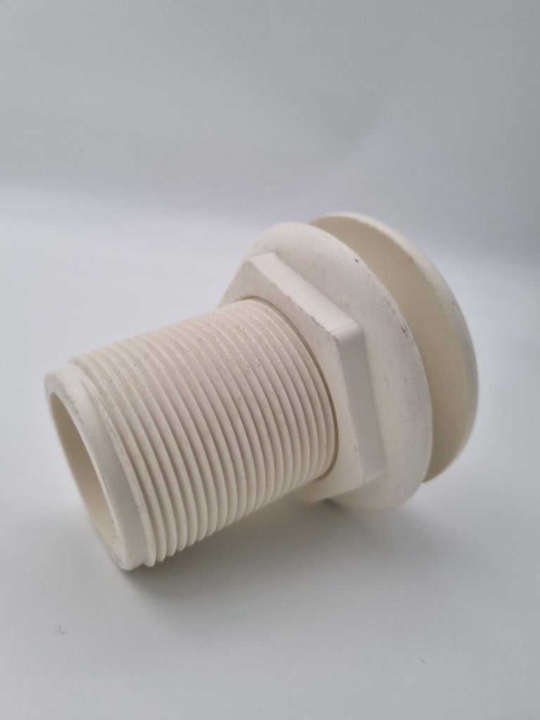 A 1 1/4" bsp unit (sometimes referred to as 32mm) However, the hole size you drill in your hull for the 1 1/4" bsp skin fitting must be capable of taking the wider part where the thread is., in this case approx 44mm.