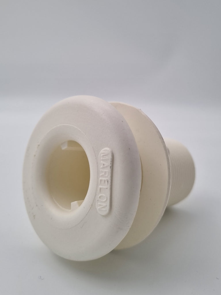 A 1" bsp unit (sometimes referred to as 25mm) However, the hole size you drill in your hull for the 1" bsp skin fitting must be capable of taking the wider part where the thread is., in this case approx 34mm.