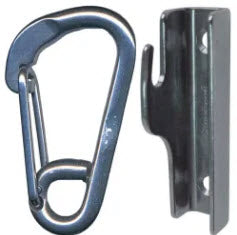 This Clever mooring hook can be loaded on the end of your boat hook using the supplied bracket . Then you can use the boat hook to reach your mooring line and once hooked you pull the attached rope seperating the pole and hook and the gate closes securely around the line for easy retrieval.